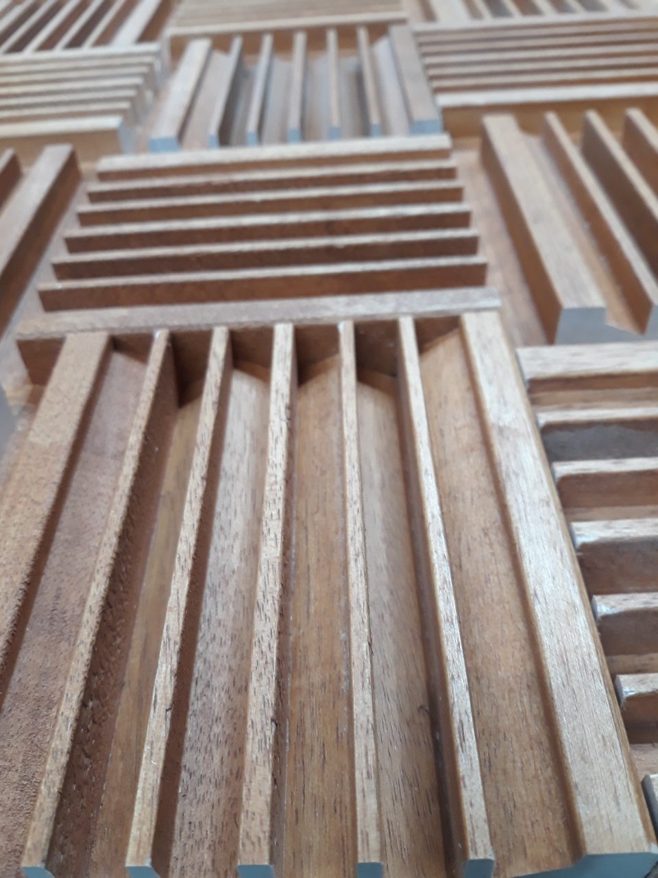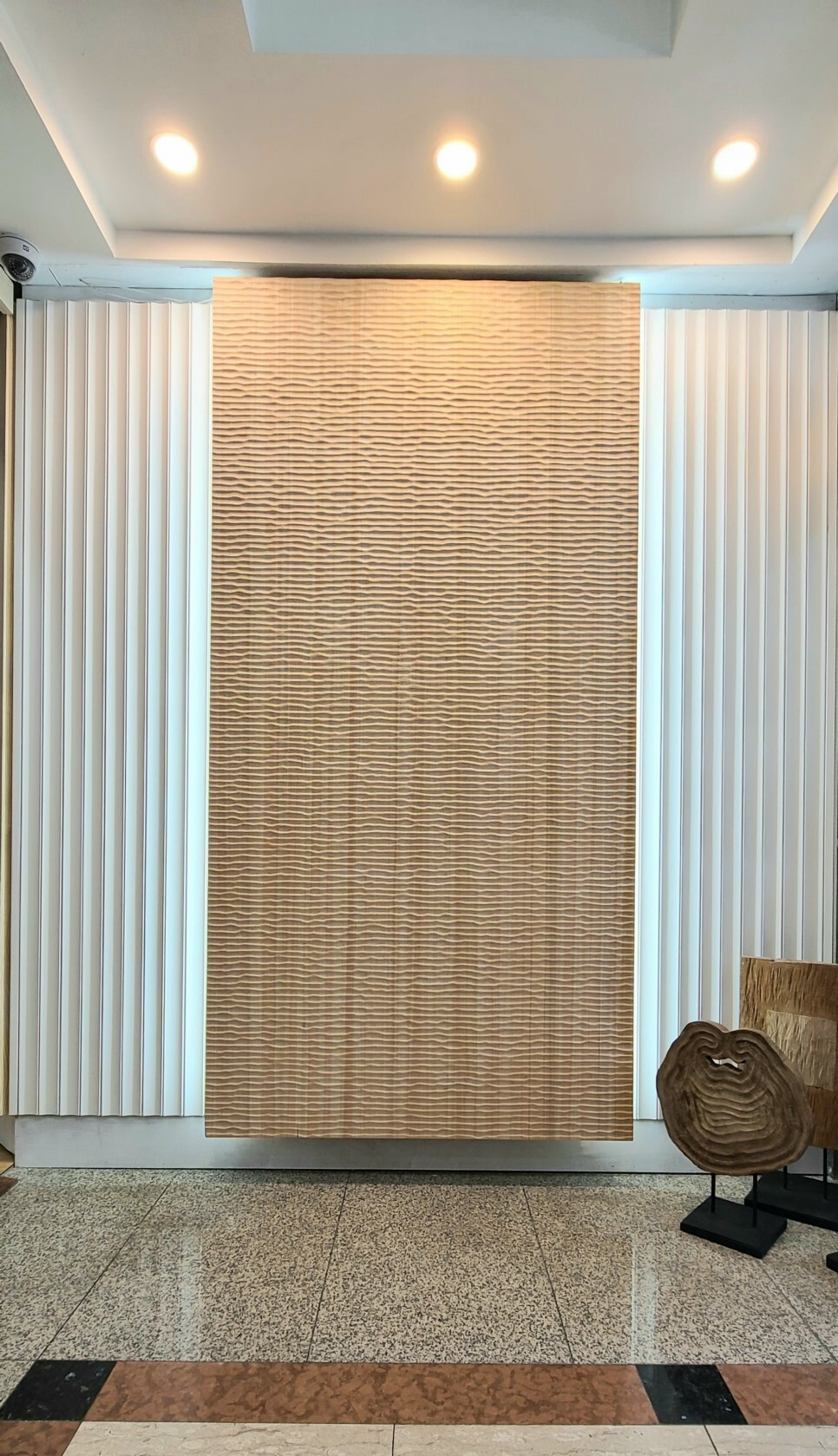 카빙으로 웨이브 조각된 편백나무 조습보드 소개합니다. 편백나무 웨이브 아트월 조습보드 4*8 긴시간 개발...