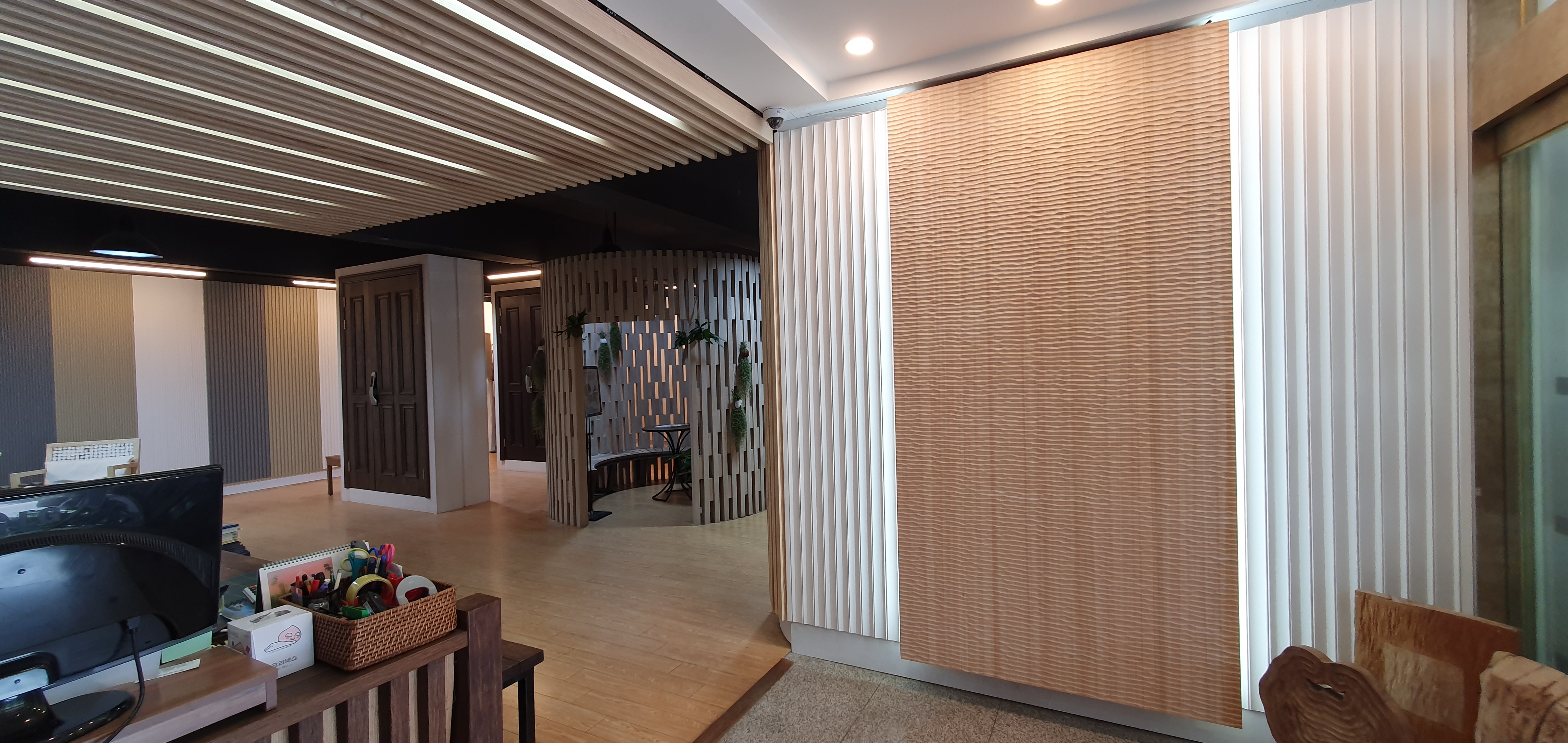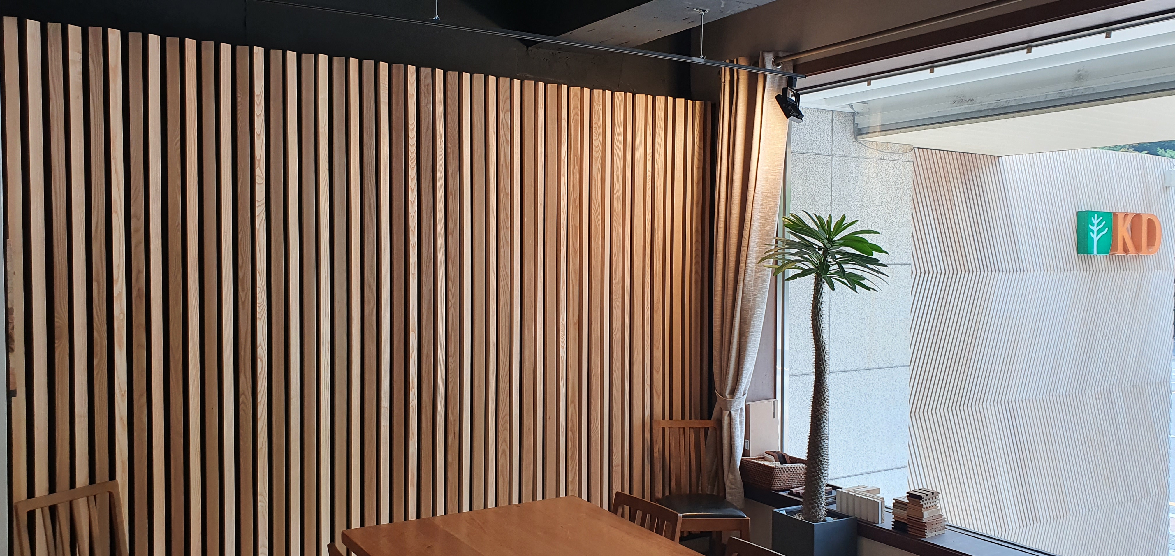 입구에 들어서면 정면위로 #어쿠스틱 클릭루버 천장재