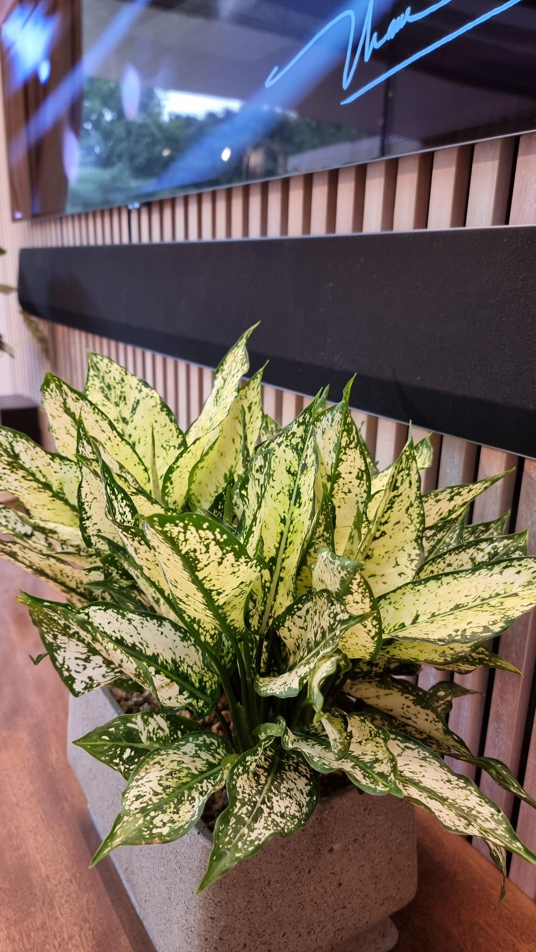 실내 공기정화식물인 열대 관엽수를 배치해서 오디오실을 더욱 풍요롭게 인테리어 하고 있습니다.