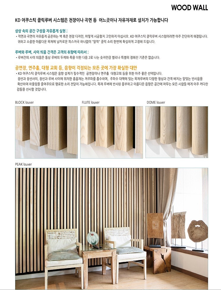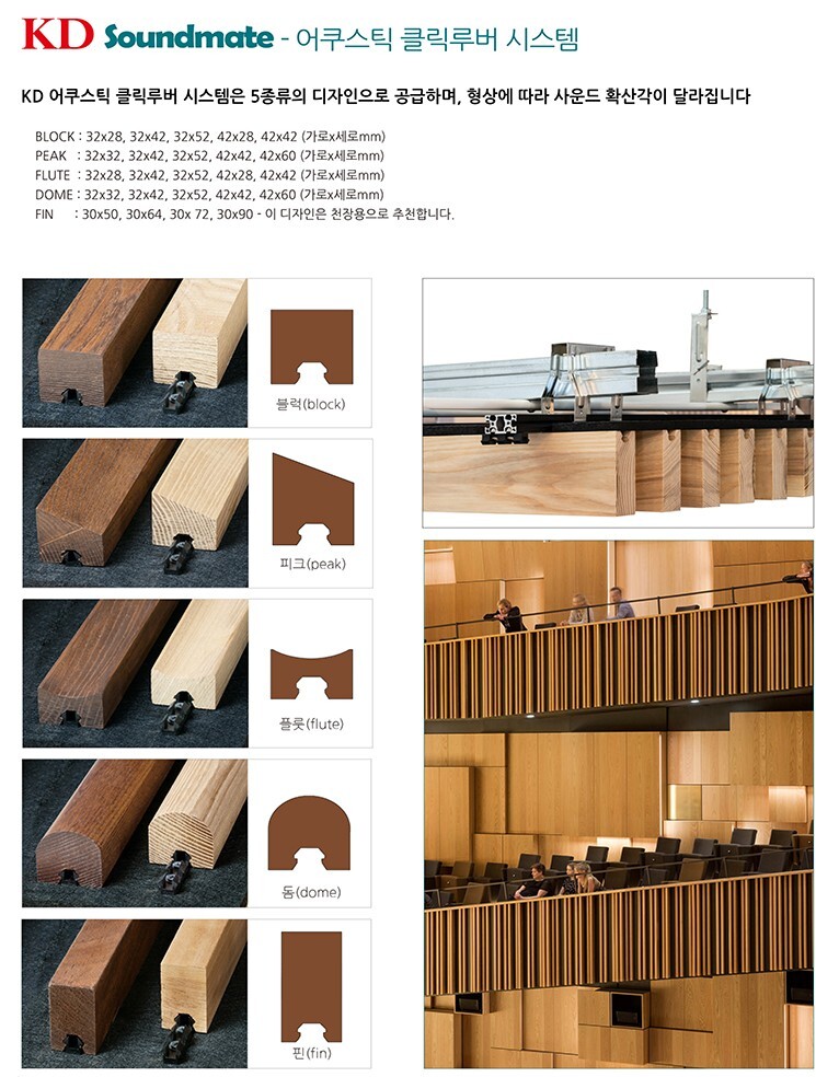 | 설치 제품 안내 사운드메이트 클릭루버 레일 시스템 어쿠스틱 + 음향효과 디퓨징 방음 차음 |