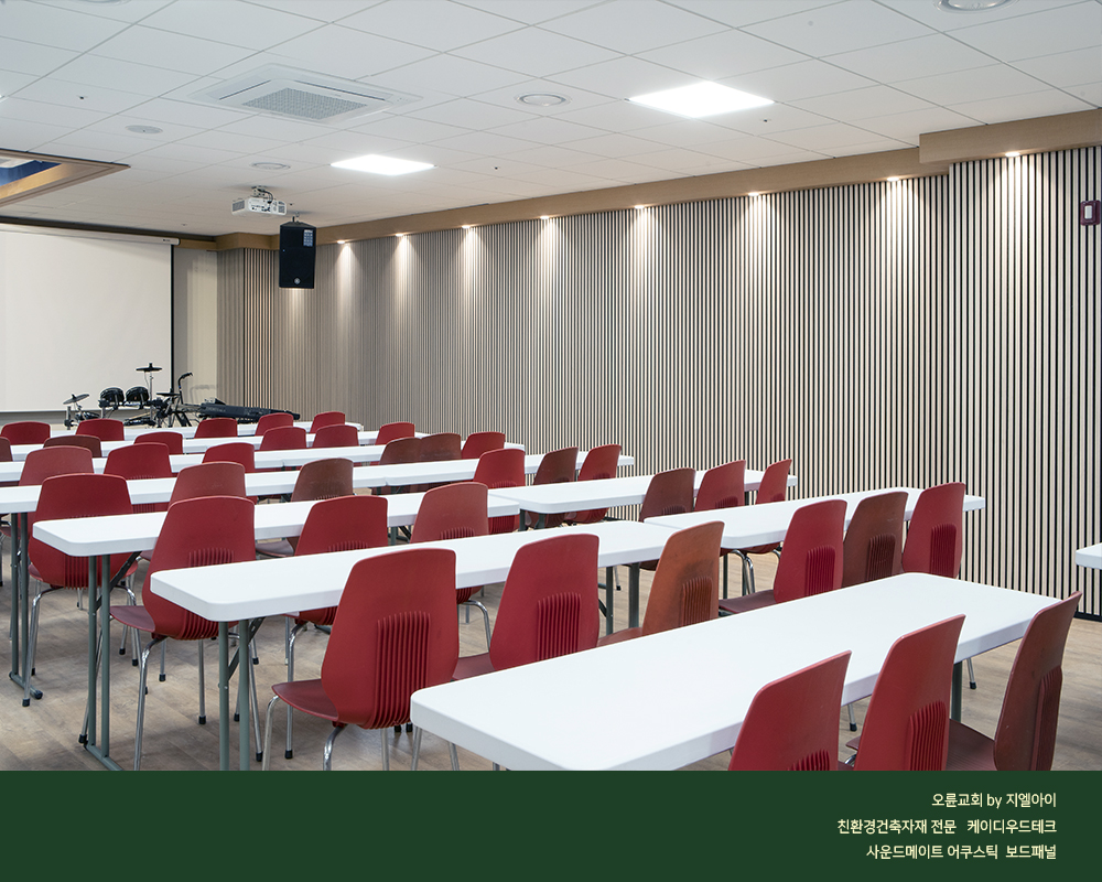 오륜교회 신축별관 지하2층 세미나실에 당사의 '사운드메이트 어쿠스틱 보드패널' 채용되어