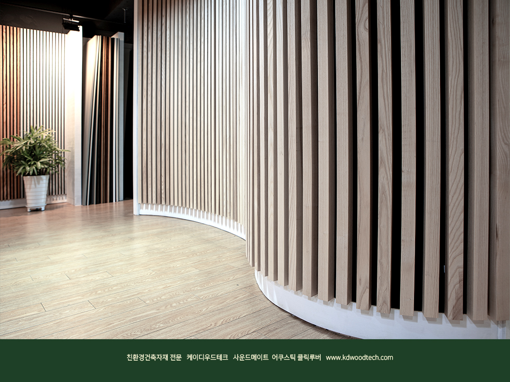 어쿠스틱 보드패널, 실크우드 화이트워시 설치가 끝났습니다.